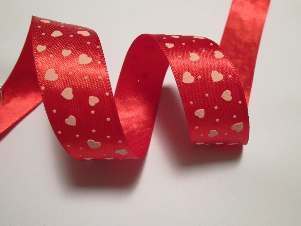 Stuha atlasová červená "plastické srdiečka" - 24 mmSkladom0,60 EUR/ m0,49 EUR bez DPH