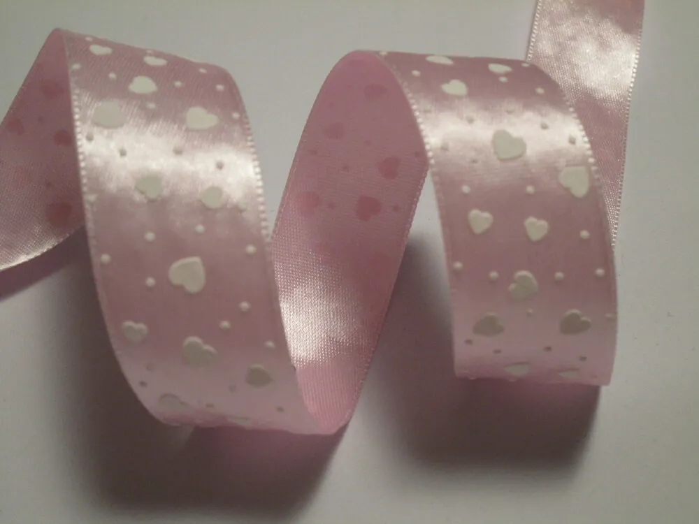 Stuha atlasová ružová "plastické srdiečka" - 24 mm