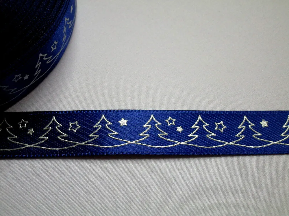 Stuha atlasová tmavomodrá "strieborný stromček"Skladom0,80 EUR/ m0,65 EUR bez DPH