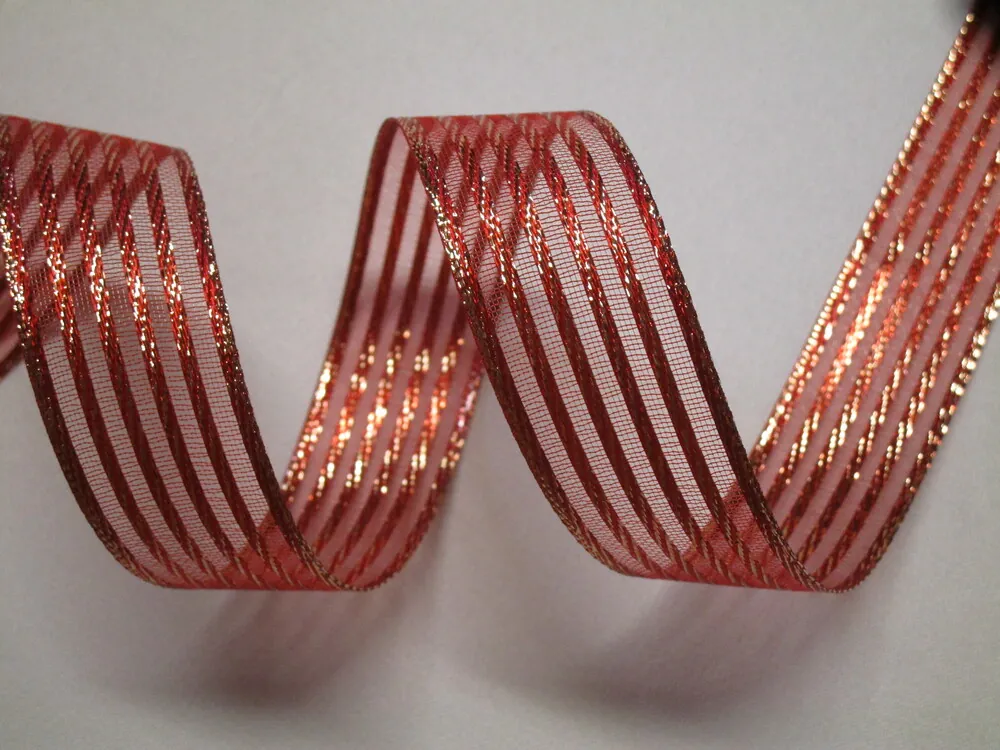 Stuha dekoračná "červená so zlatým" - 25 mm