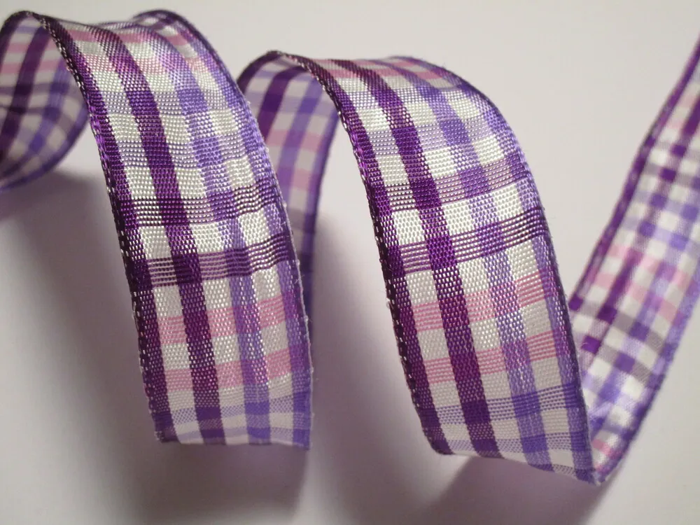 Stuha dekoračná s drôtikom "fialové káro" - 25 mmSkladom0,40 EUR/ m0,33 EUR bez DPH