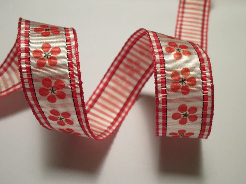 Stuha dekoračná s drôtikom "kvety" - 25 mmSkladom0,60 EUR/ m0,49 EUR bez DPH