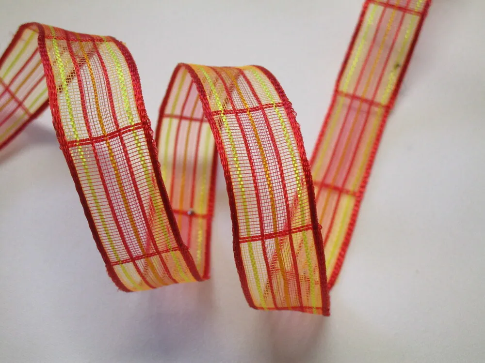 - vzor - červené okraje stuhy, červené pásiky, žlté pásiky
