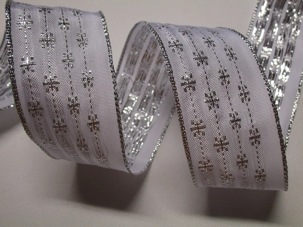 - Stuha dekoračná s drôtikom "strieborné vločky" - 40 mm