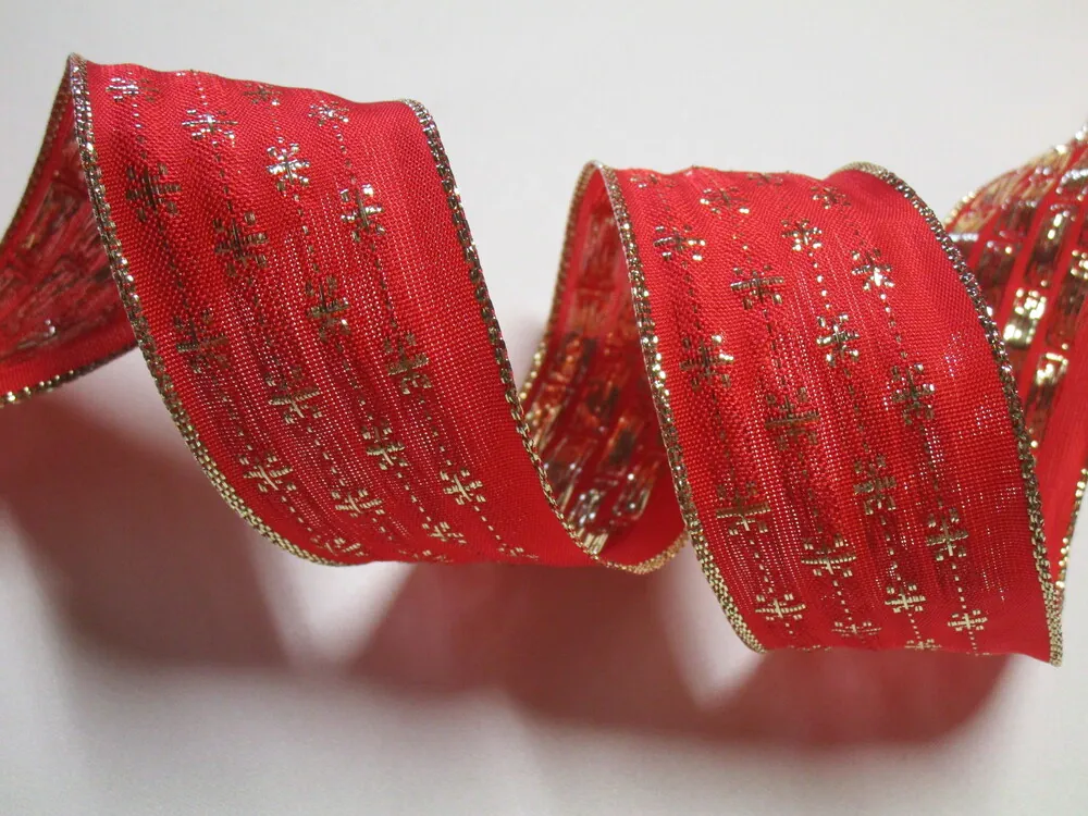 - Stuha dekoračná s drôtikom "zlaté vločky" - 40 mm