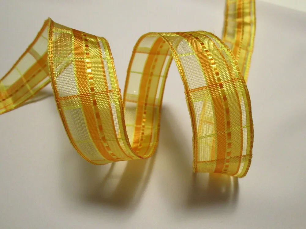 Stuha dekoračná s drôtikom "žlto-pomarančová" - 25 mm