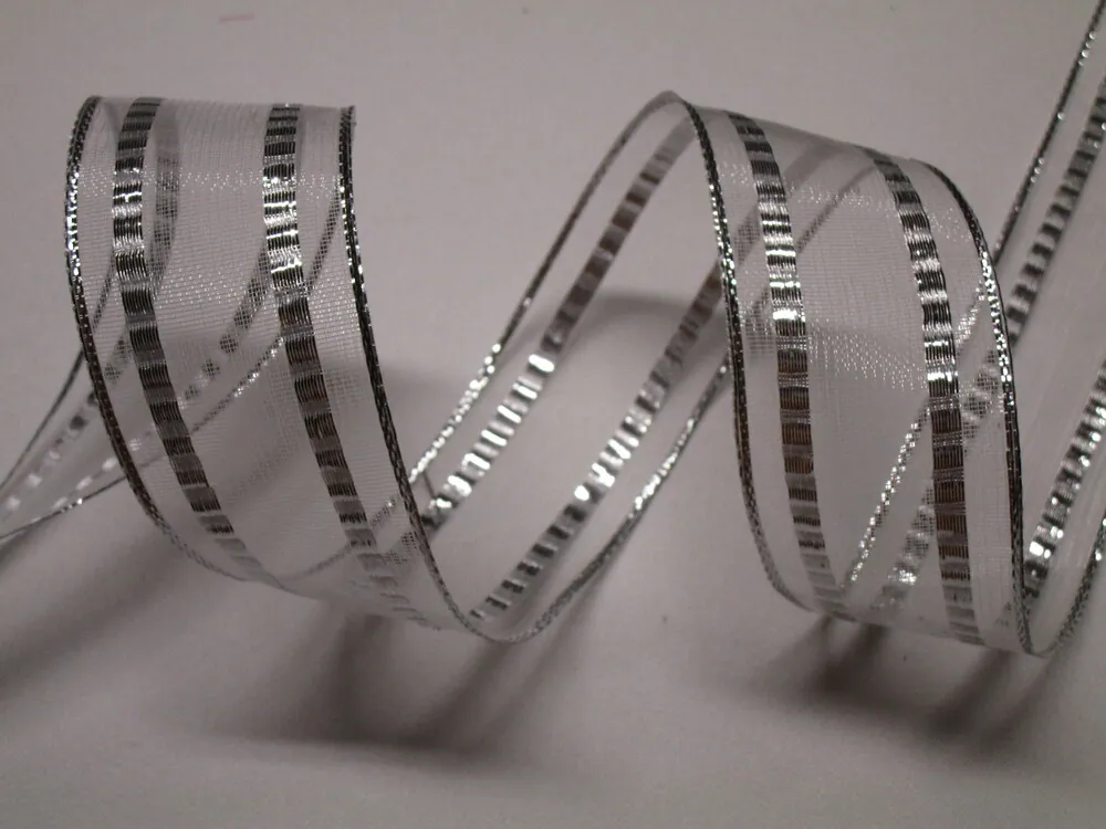 Stuha dekoračná "strieborné pásiky" - 40 mm