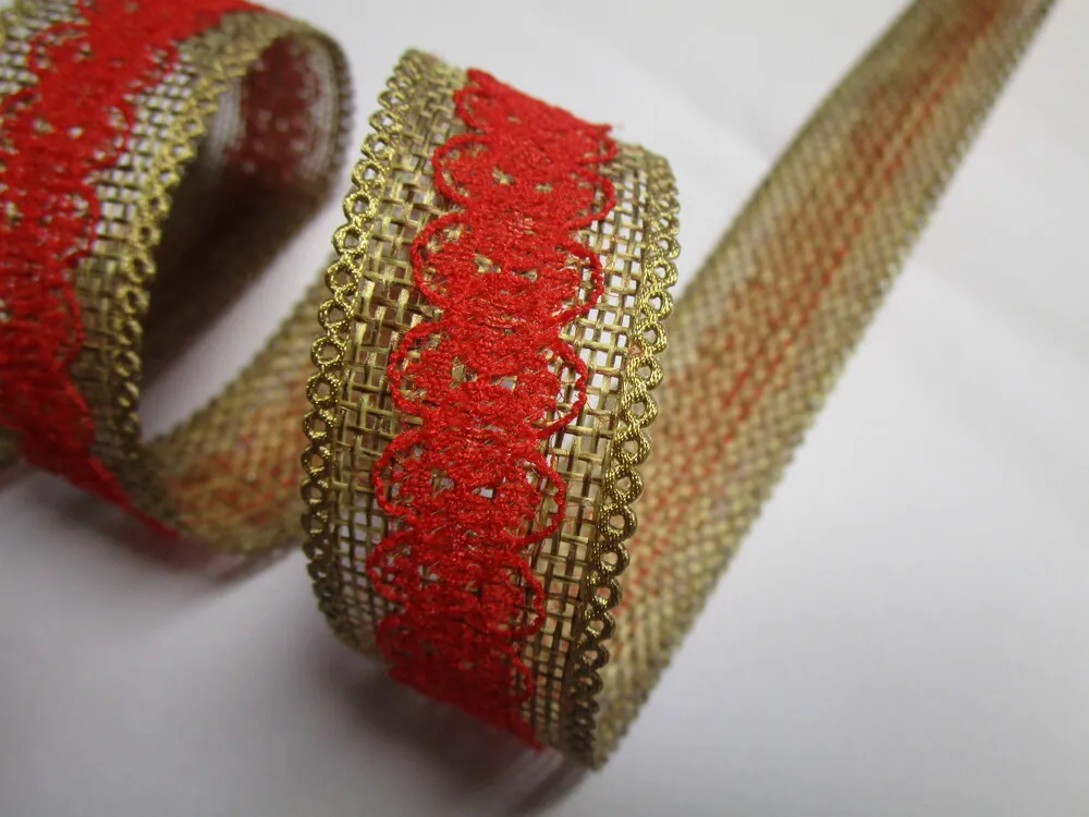 - Stuha jutová "tmavozlatá" - červený stred - 25 mm