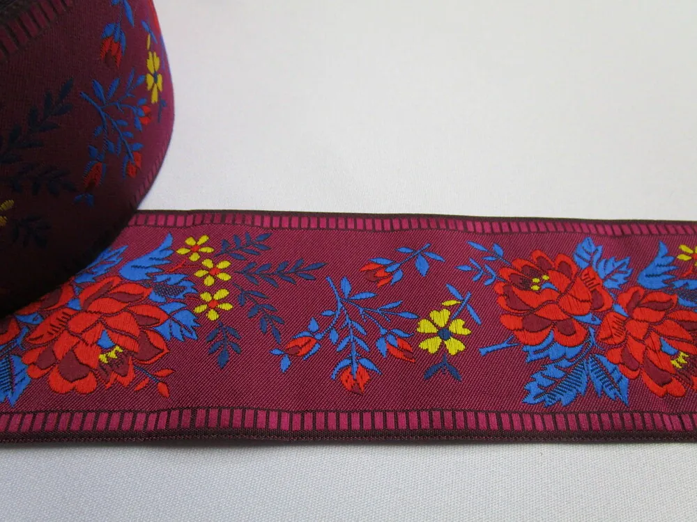 Stuha krojová baklažánová "červeno-vínový kvet" - 5,5 cmSkladom7,00 EUR/ m5,69 EUR bez DPH
