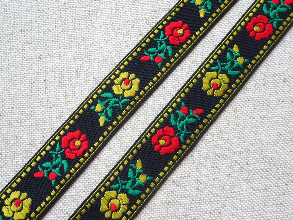 Stuha krojová čierna "žlté a červené kvety" - 1,8 cmSkladom2,40 EUR/ m1,95 EUR bez DPH