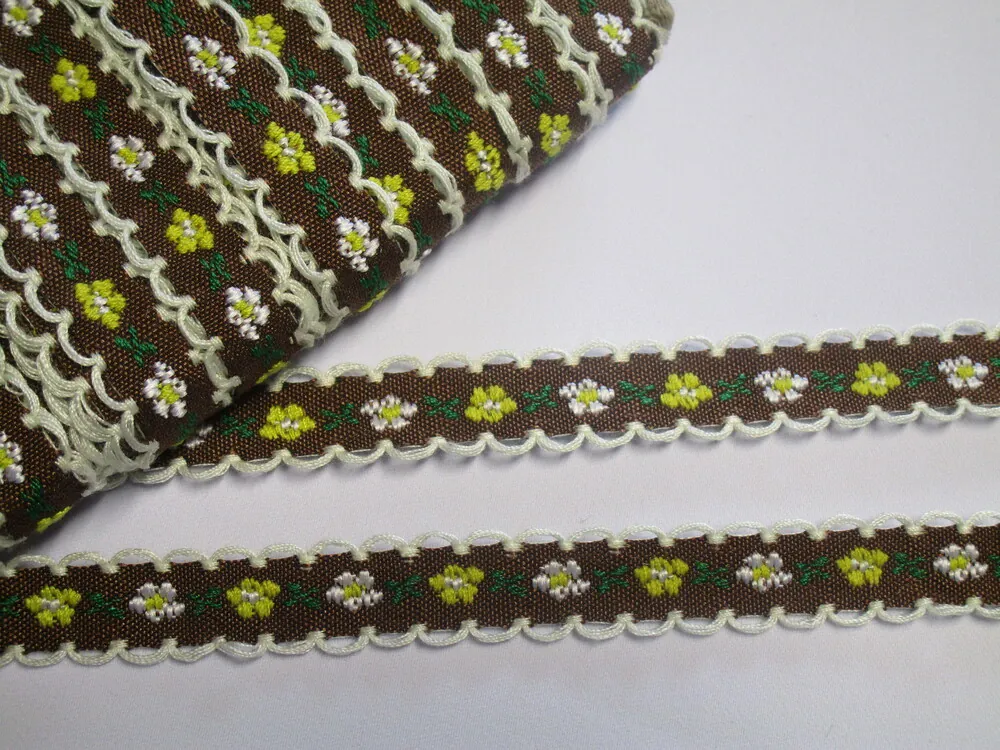 Stuha krojová hnedá "žltý a biely kvet"Skladom1,00 EUR/ m0,81 EUR bez DPH