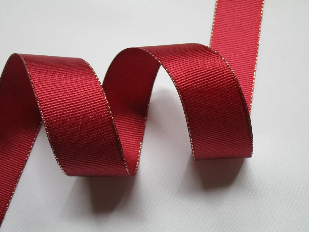 - Stuha rypsová "bordó so zlatým okrajom" - 25 mm