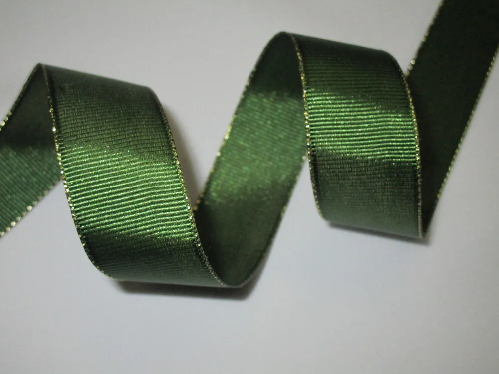 - Stuha rypsová "zelená so zlatým pásikom" - 25 mm