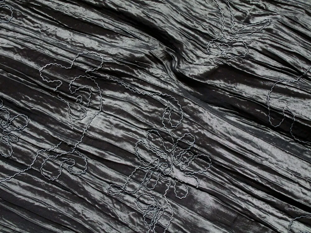 Taft krčený tmavosivý "plastické kvety"