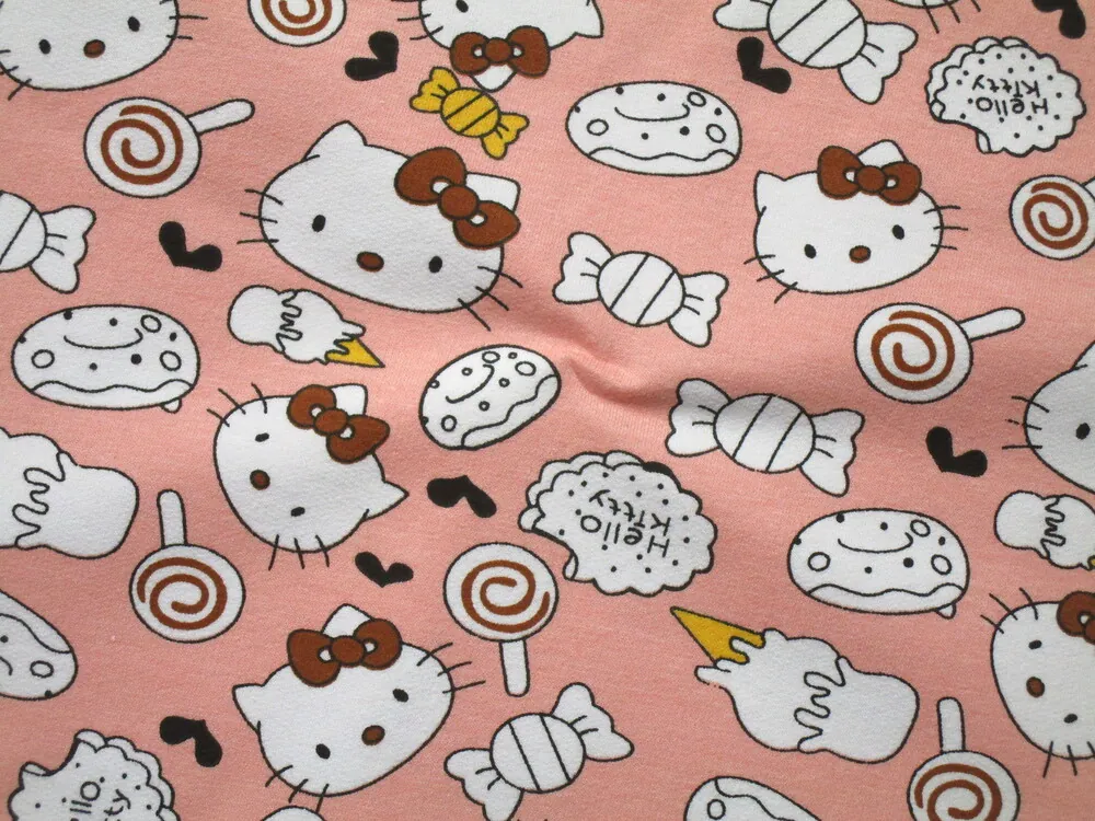 Teplákovina broskyňová "Hallo Kitty"Skladom15,00 EUR/ m12,20 EUR bez DPH