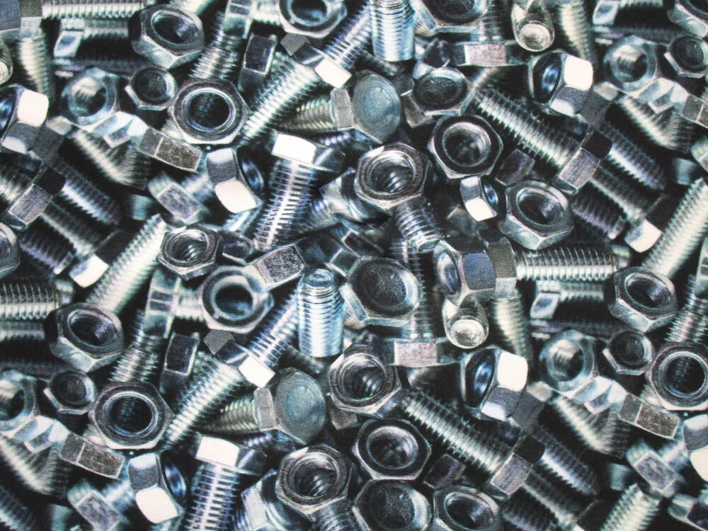 - vzor - 3D sivo - modré skrutky a matice