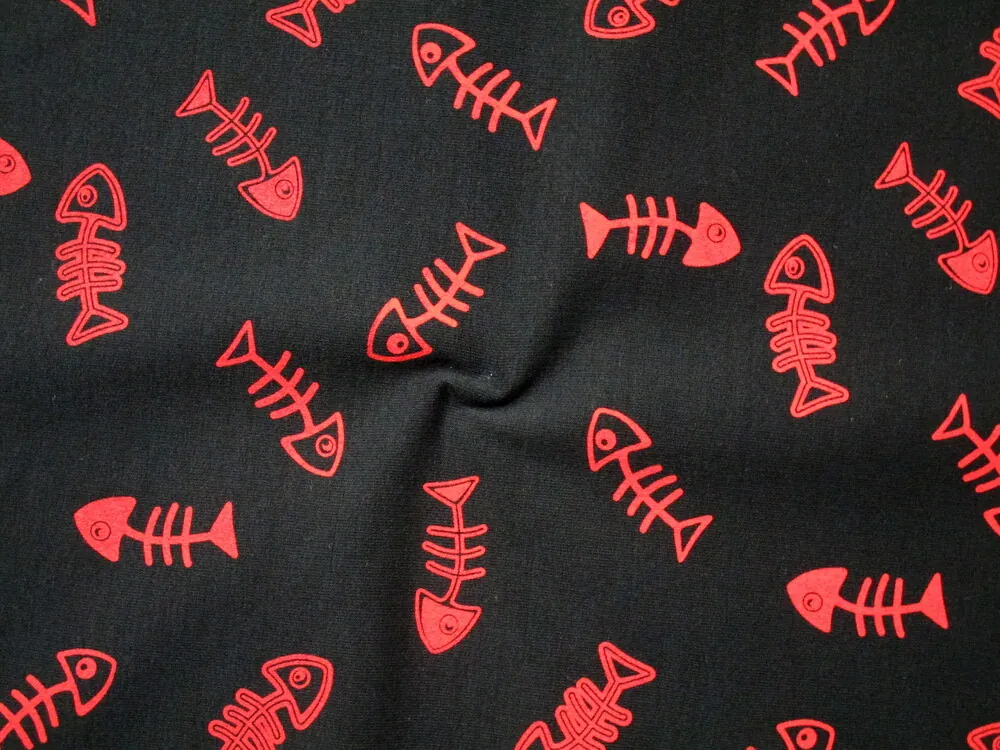 Teplákovina čierna "červené ryby"Skladom12,50 EUR/ m10,16 EUR bez DPH