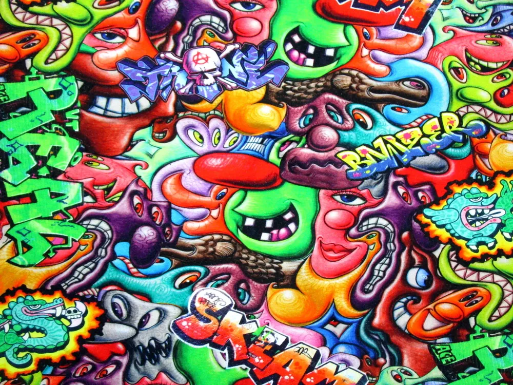 - vzor - rôzne postavičky, nápisy, nos, lebka