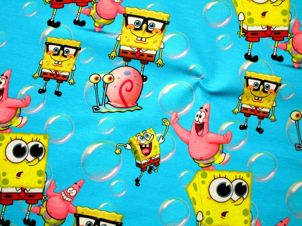 - vzor - žltý Sponge Bob, ružový Patrik, bublinky