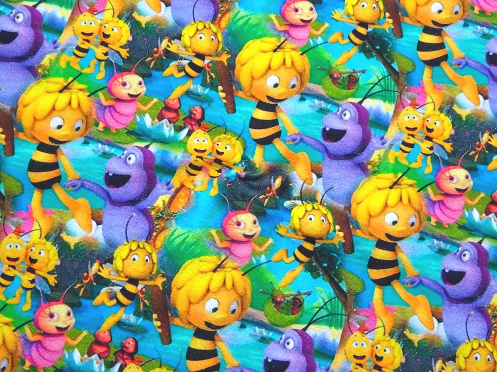 Teplákovina tyrkysovo-zelená "včielka Mája"Skladom18,00 EUR/ m14,63 EUR bez DPH