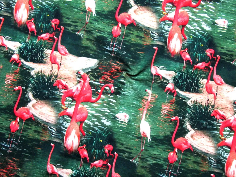 Teplákovina zelená "plameniak" - digitálna tlačSkladom18,00 EUR/ m14,63 EUR bez DPH