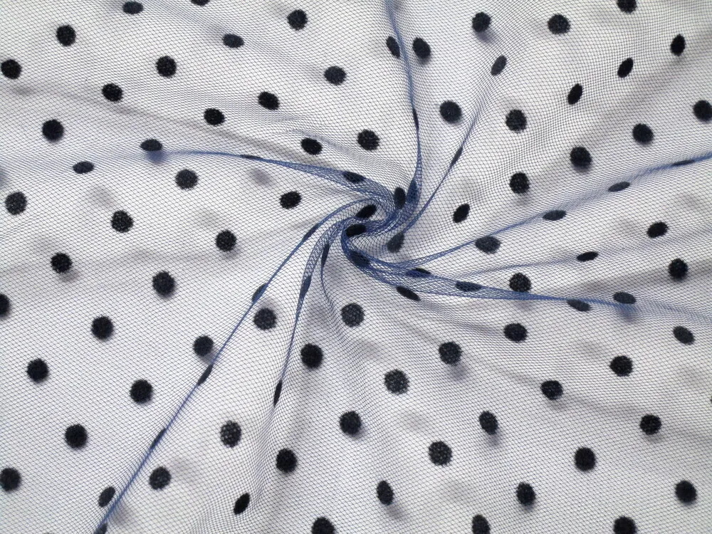 Tyl modrý "sivo-modrá zamatová bodka"Skladom10,50 EUR/ m8,54 EUR bez DPH