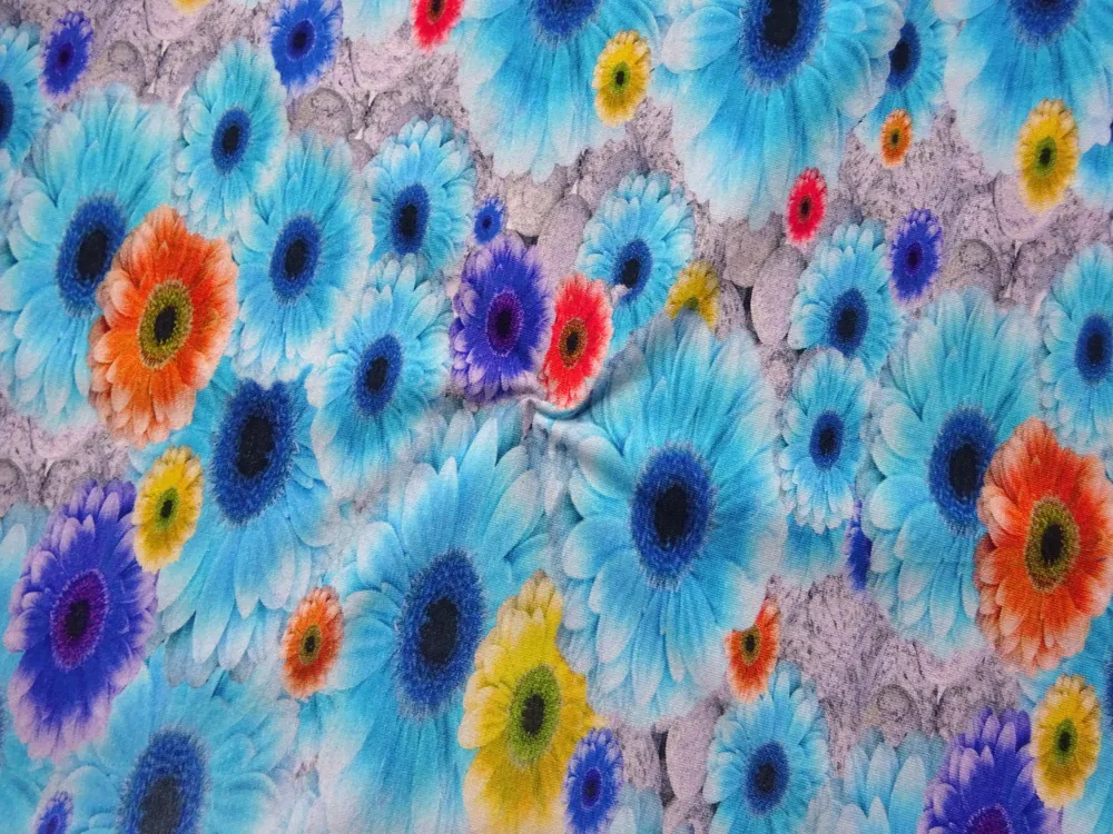 - vzor - žlté, pomarančové, fialové a modré kvety