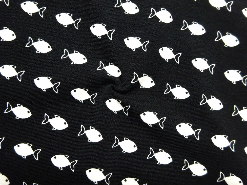 Úplet čierny "biele rybky"Skladom10,00 EUR/ m8,13 EUR bez DPH