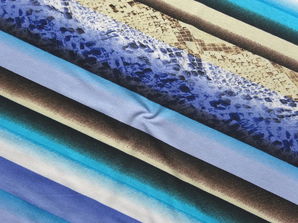 Úplet béžovo-modrý "pásiky, hadí vzor"Skladom10,50 EUR/ m8,54 EUR bez DPH