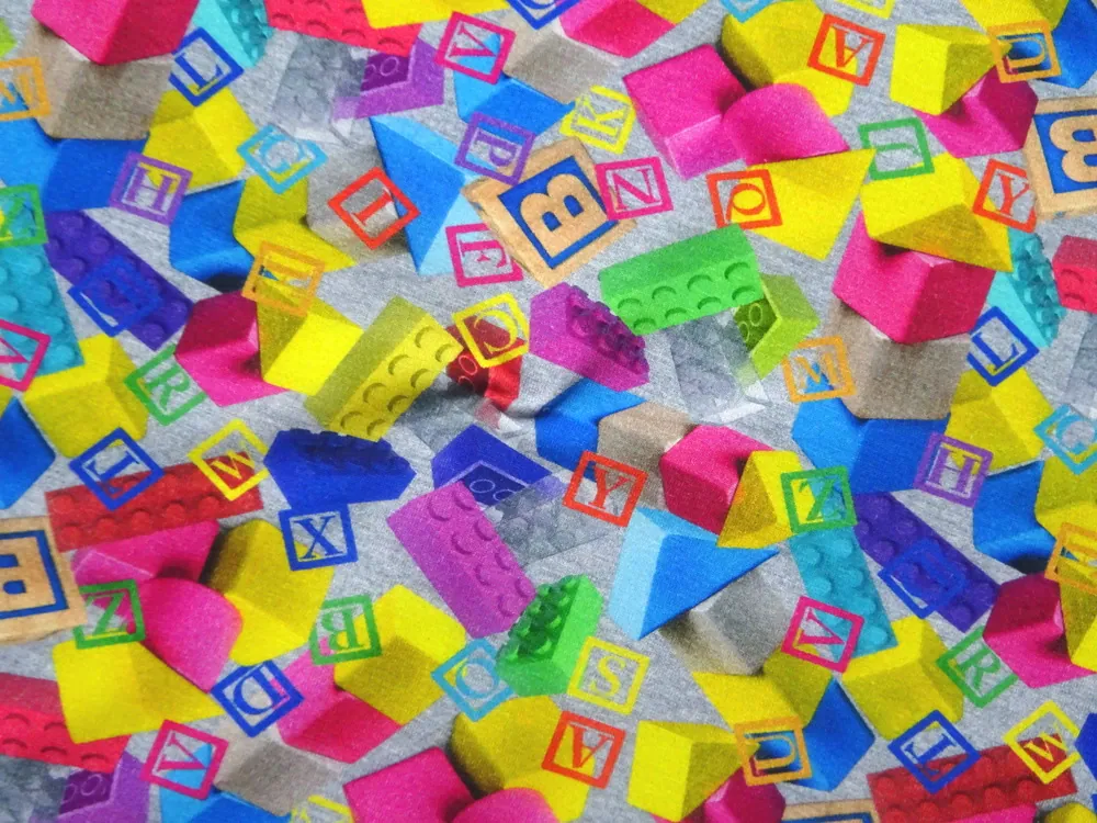 Úplet sivý melír "farebné lego, farebné kocky" - digitálna tlačSkladom18,00 EUR/ m14,63 EUR bez DPH