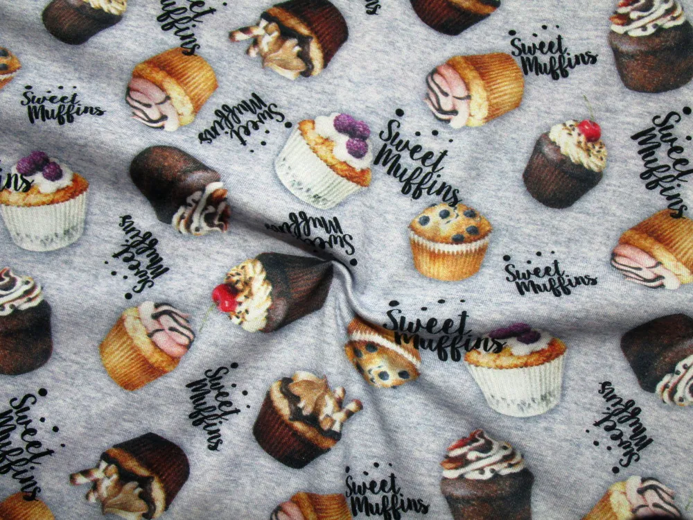 Úplet sivý melír "sweet muffins" - digitálna tlačSkladom15,00 EUR/ m12,20 EUR bez DPH