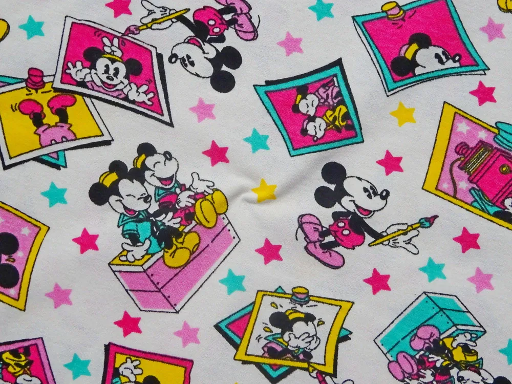 - vzor - farebný Mickey Mouse, žlté, ružové, cyklaménové a zelené hviezdičky