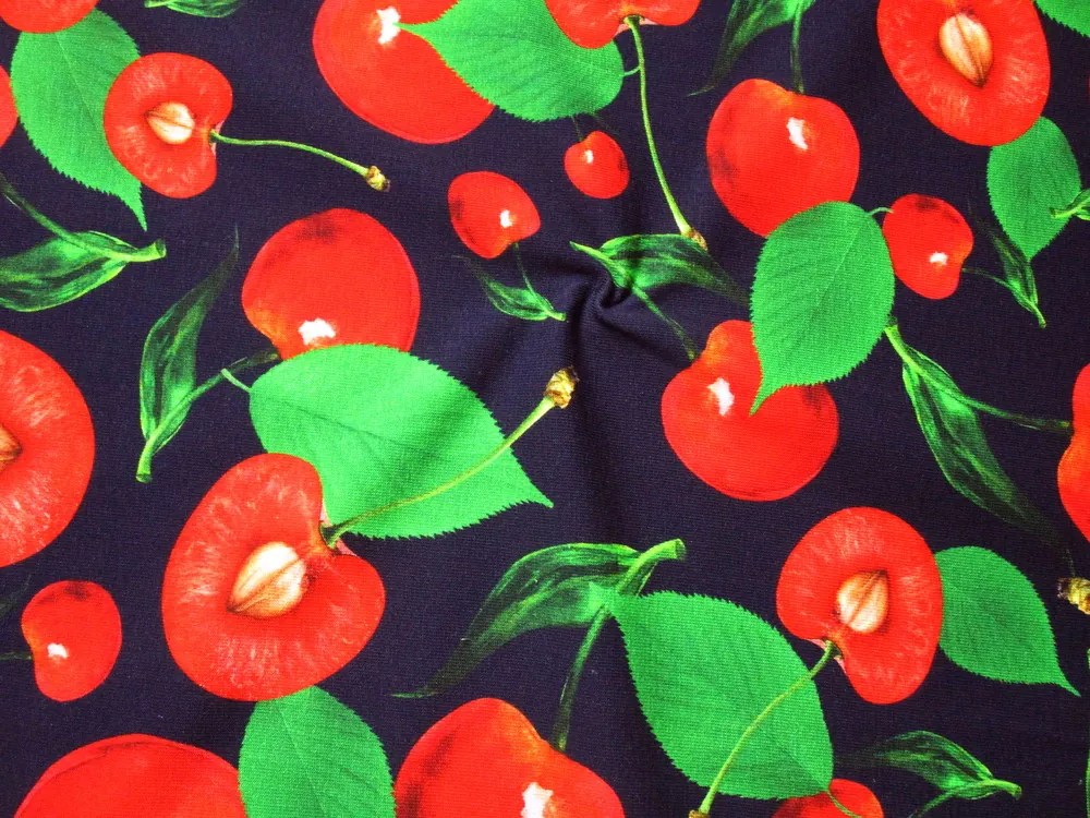 Úplet tmavomodrý "čerešne" - digitálna tlačSkladom12,50 EUR/ m10,16 EUR bez DPH