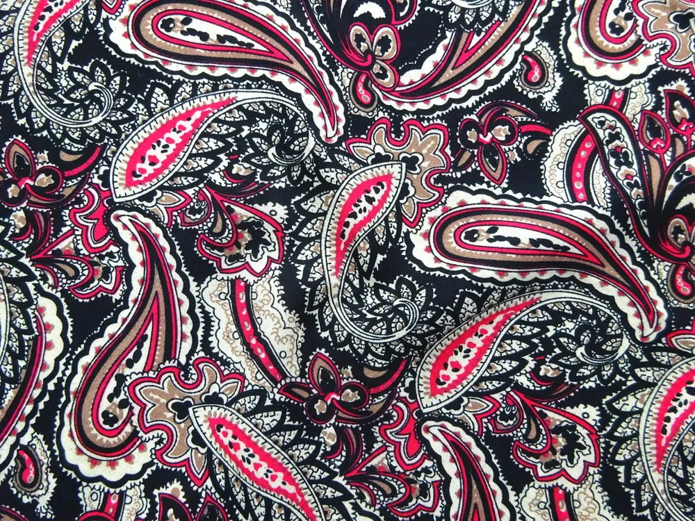 Šatovka čierna "béžovo-červený kašmírový vzor"Skladom8,50 EUR/ m6,91 EUR bez DPH