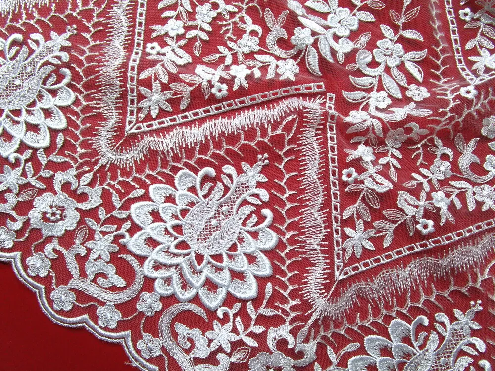 - Vyšívaný tyl biely "kvet, cik-cak" - bordúra