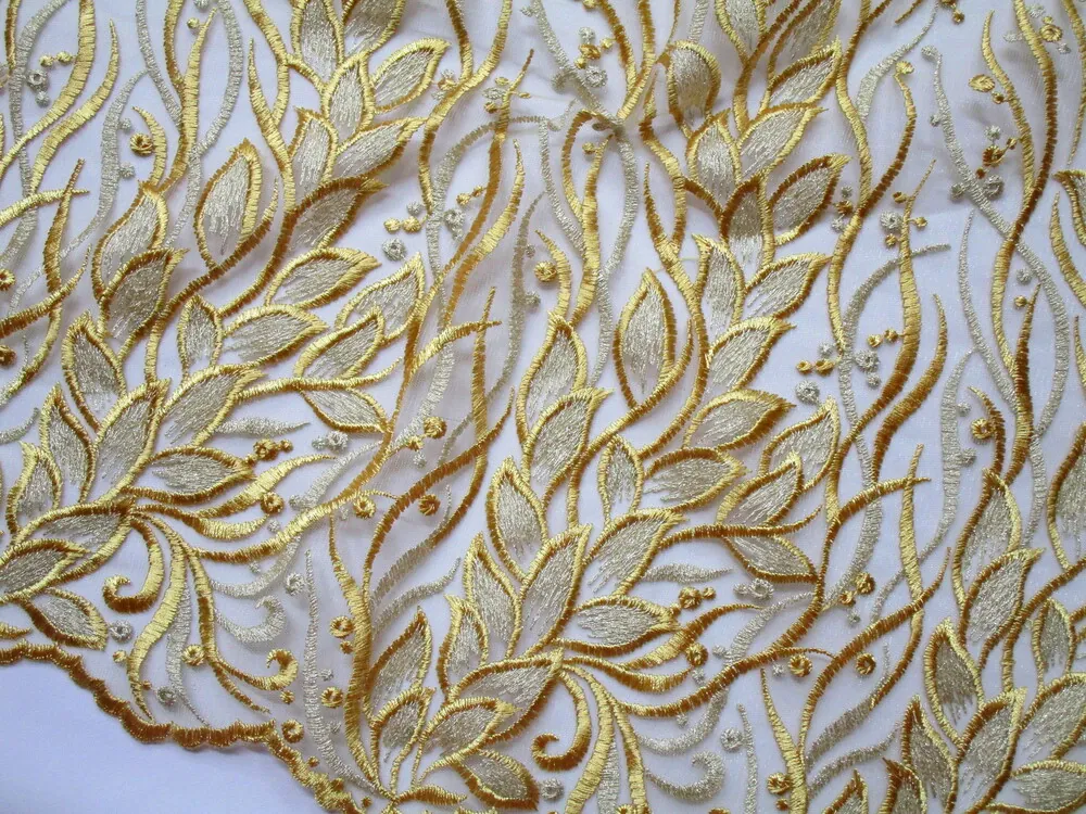Vyšívaný tyl zlatý "béžovo-zlatý vzor"Skladom20,00 EUR/ m16,26 EUR bez DPH