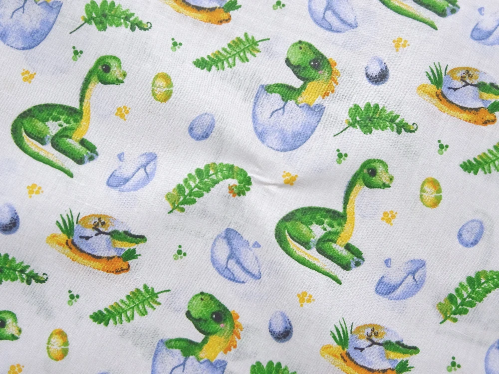 Bavlna biela "dinosaurus"Skladom6,50 EUR/ m5,28 EUR bez DPH