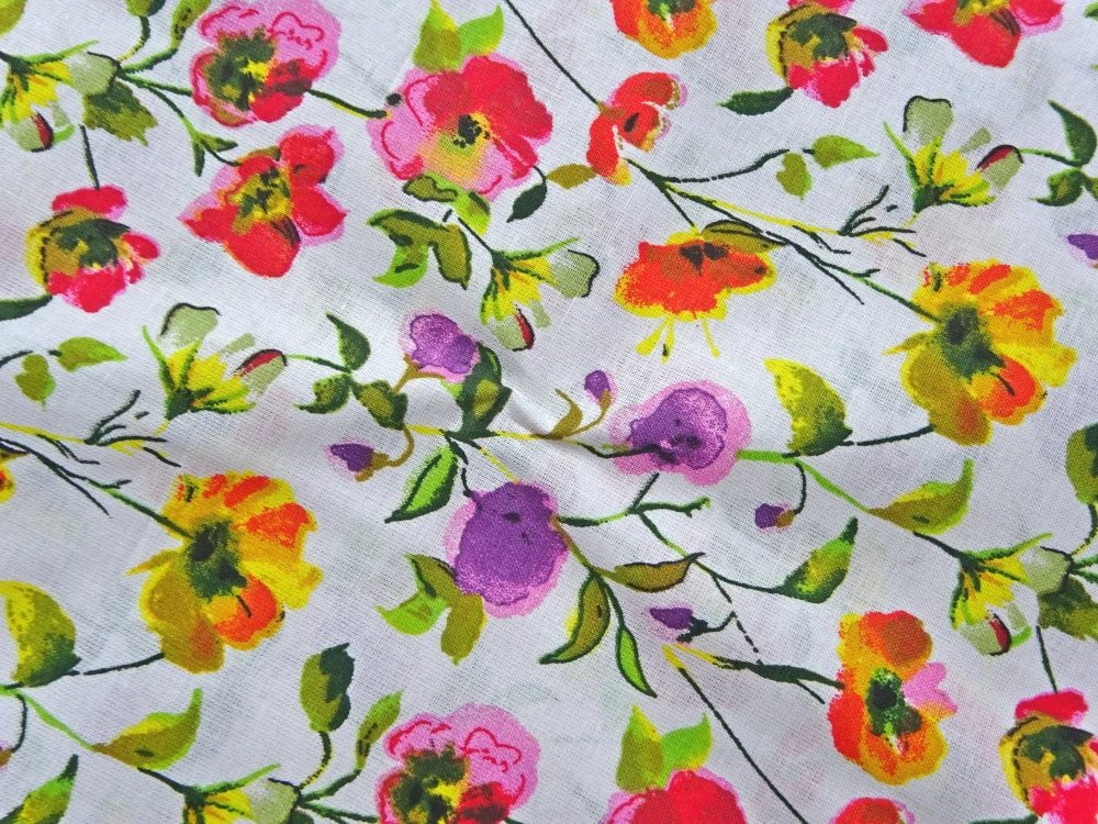 - Bavlna biela "farebné kvety"