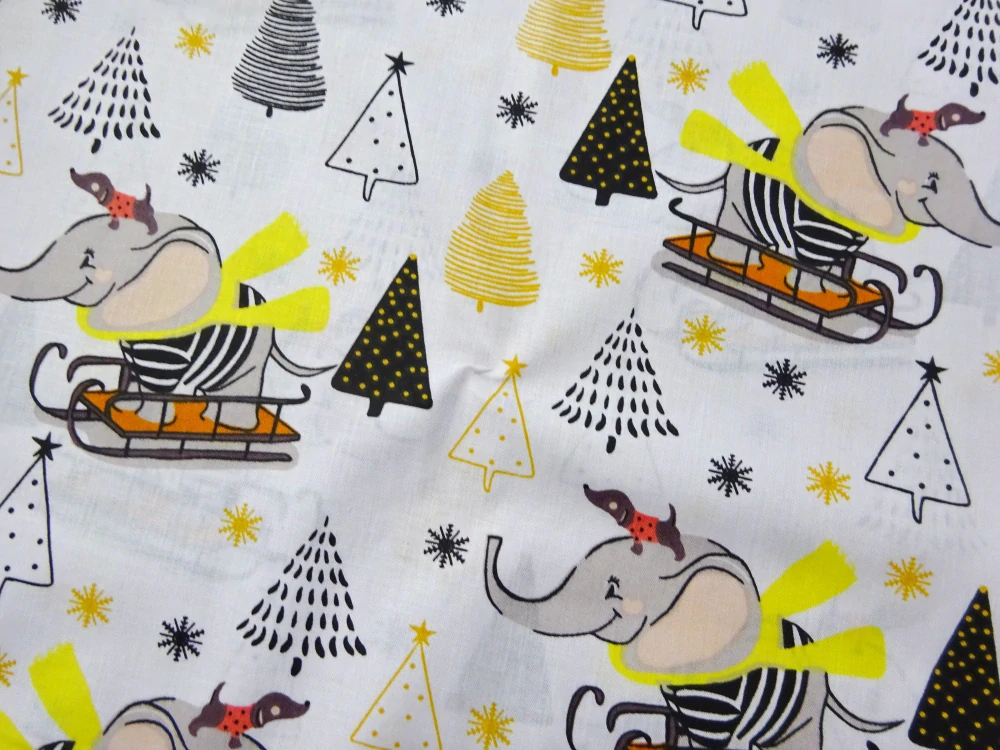 Bavlna biela "slon na saniach"Skladom6,50 EUR/ m5,28 EUR bez DPH