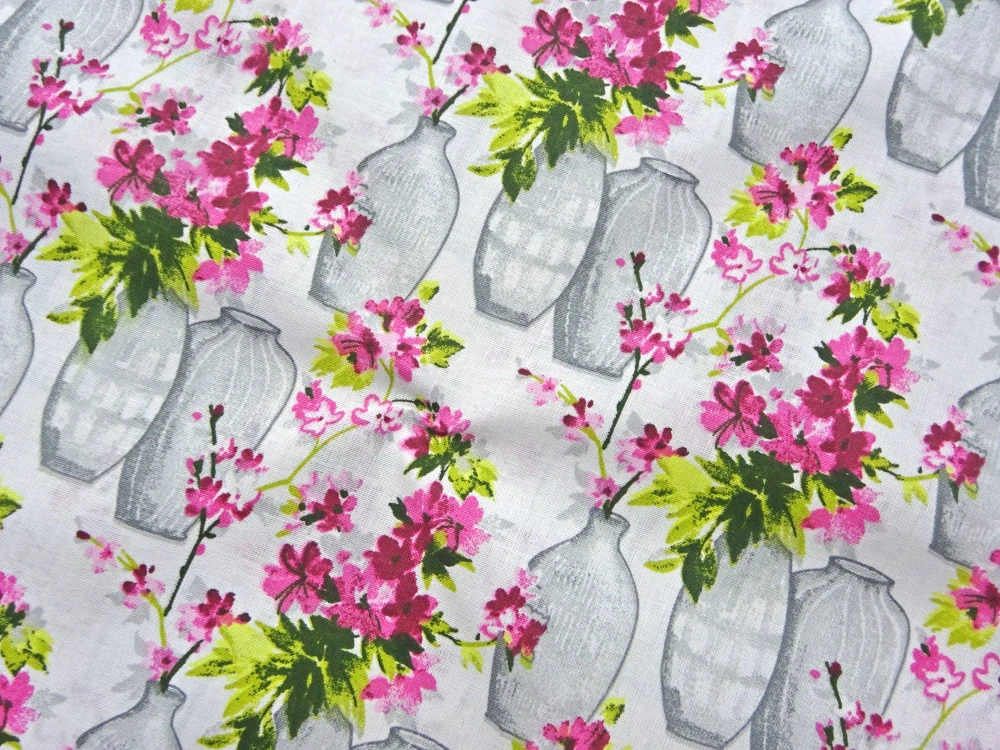 Bavlna biela "váza s ružovými kvetmi"Skladom6,50 EUR/ m5,28 EUR bez DPH