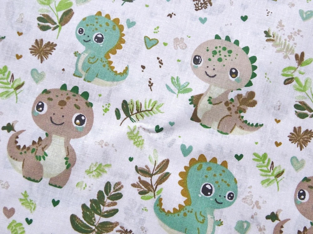 - Bavlna biela "zelený a hnedý dinosaurus"