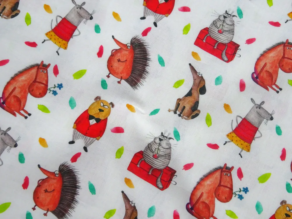 Bavlna biela "zvieratká, lístky" - TalianskoSkladom9,50 EUR/ m7,72 EUR bez DPH