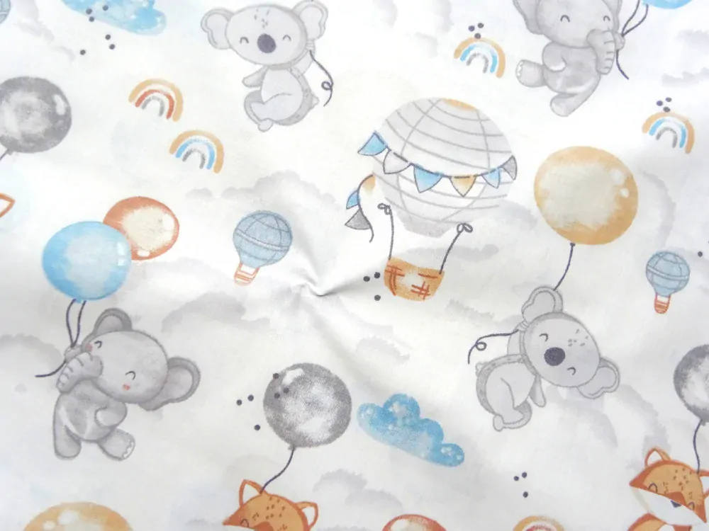 Bavlna biela "zvieratká s balónikom"Skladom6,00 EUR/ m4,88 EUR bez DPH
