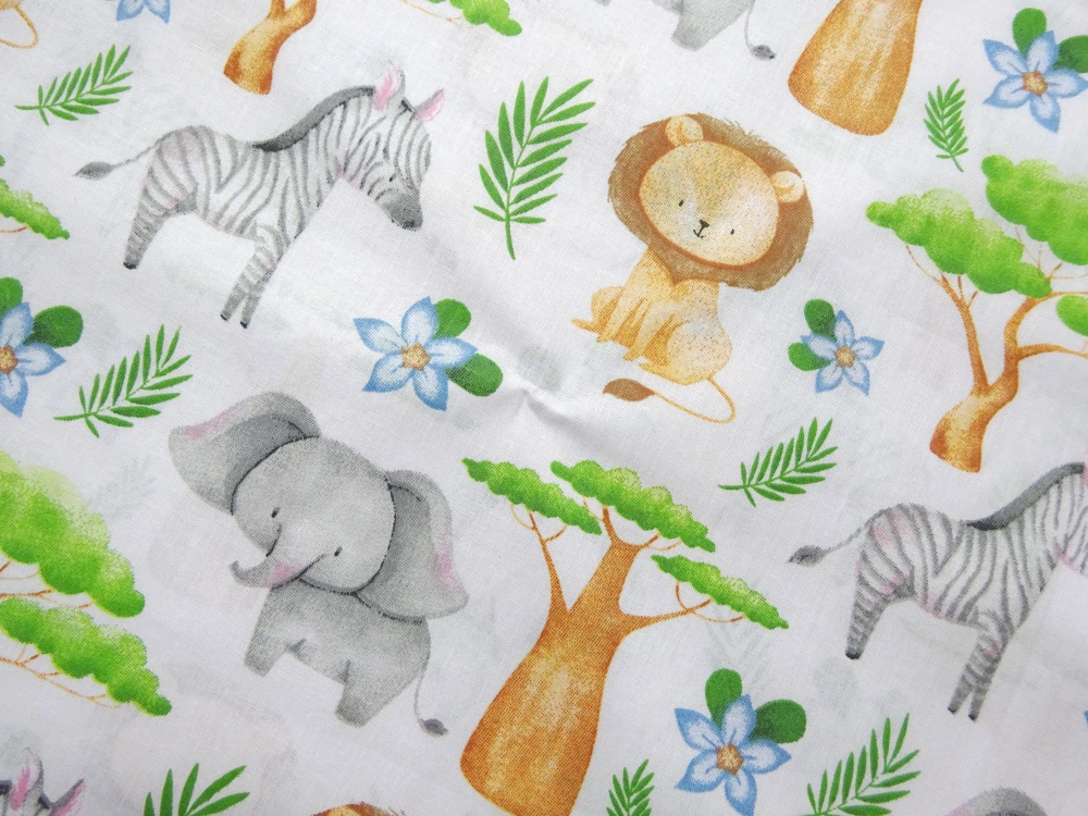 - vzor - lev, slon, zebra, stromy, listy, kvety
