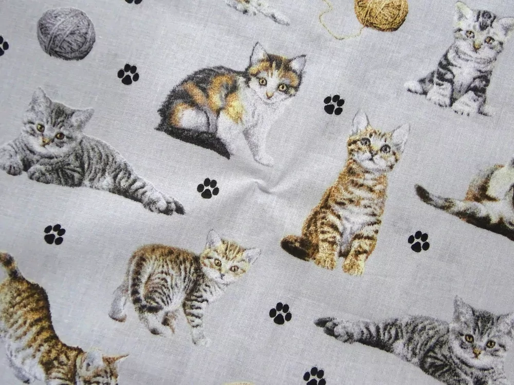- vzor - sivé, hnedé a murované mačičky 4-7 cm, sivé klbká vlny, čierne odtlačky labiek
