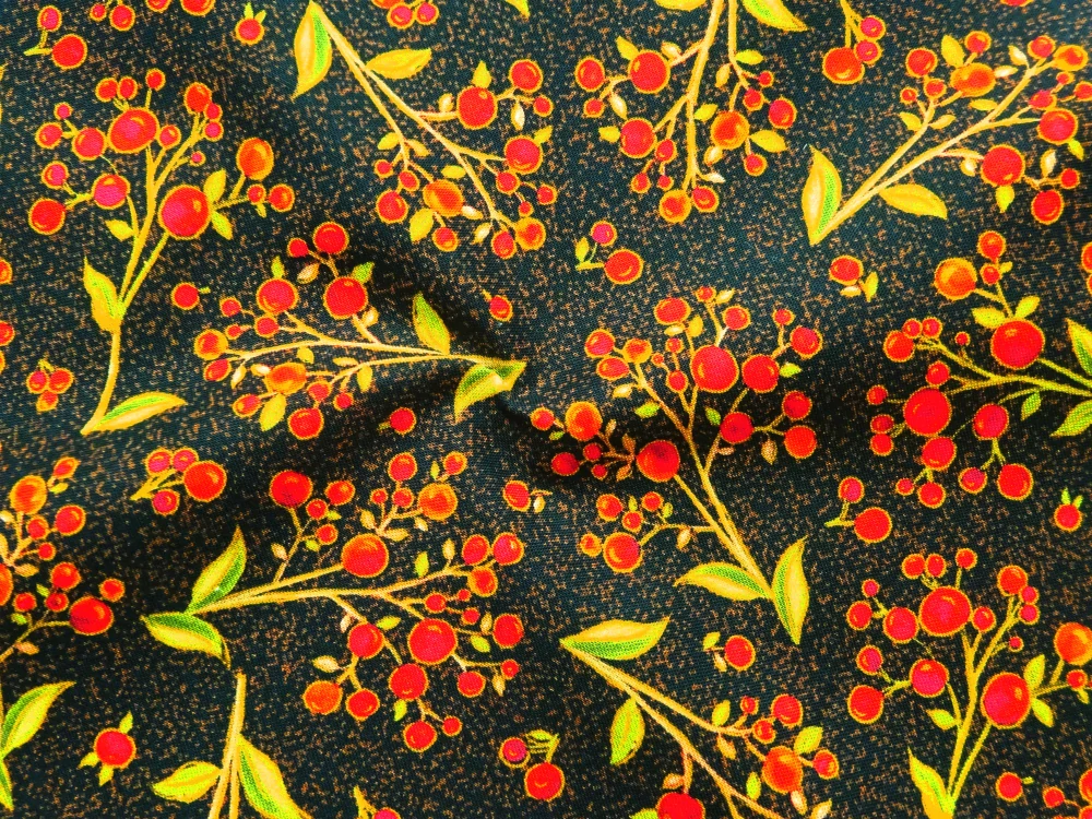 Bavlna čierna "červené bobule" - AmerikaSkladom14,00 EUR/ m11,38 EUR bez DPH
