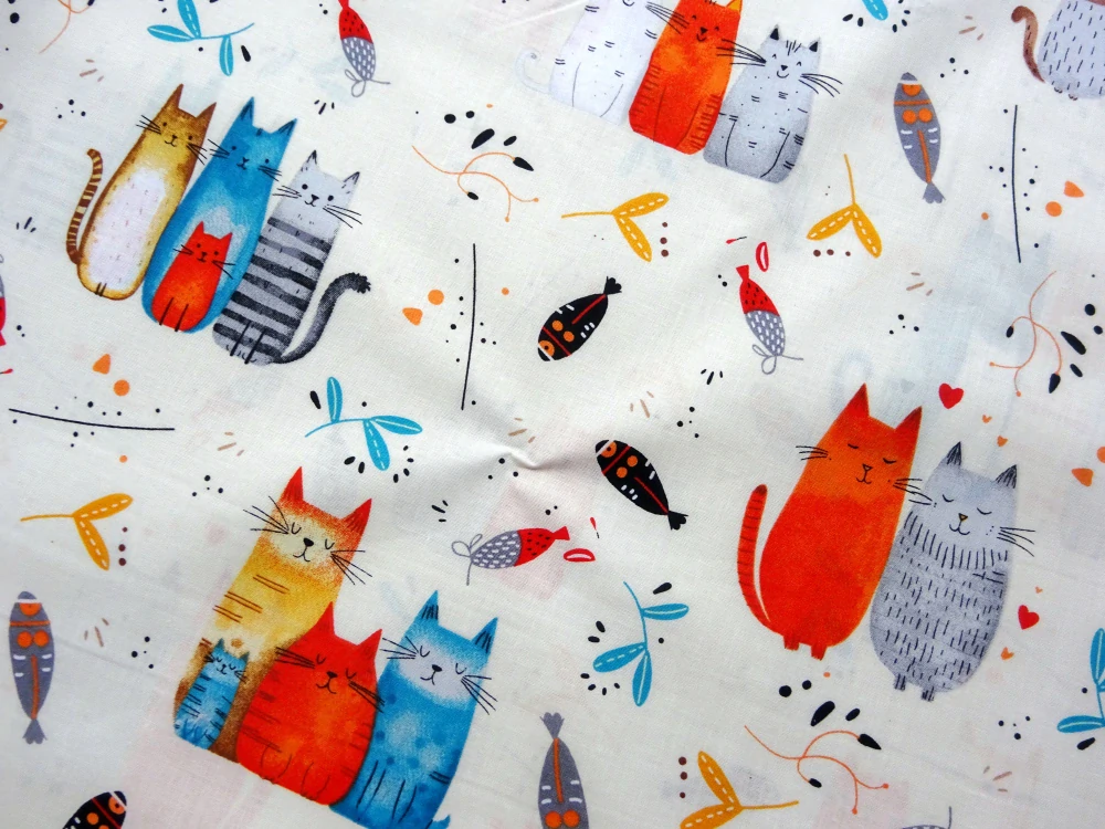 Bavlna maslová "mačičky, ryby, srdiečka"Skladom6,50 EUR/ m5,28 EUR bez DPH