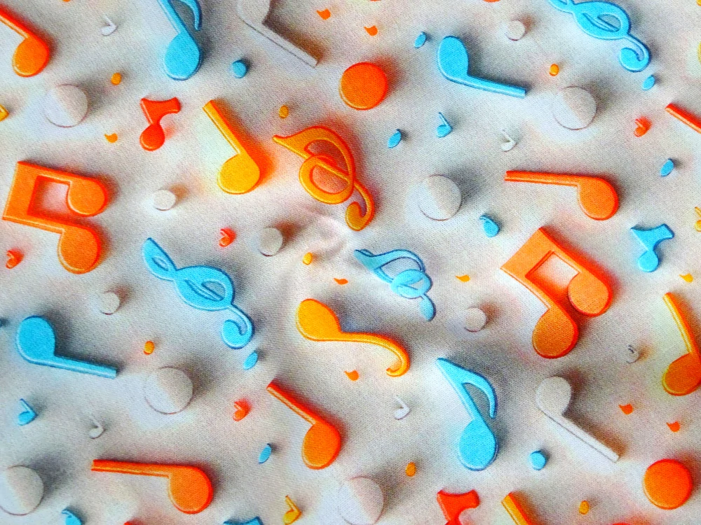- vzor - pomarančové, červené a modré noty