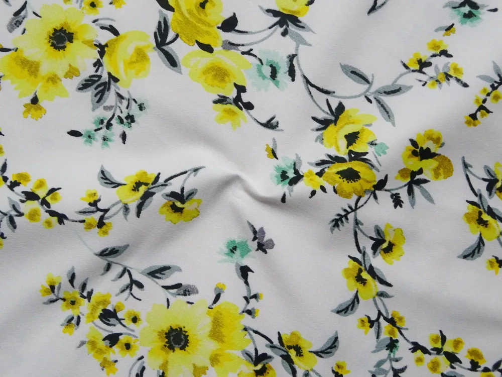 Bavlnený satén smotanový "žlté kvety"Skladom10,50 EUR/ m8,54 EUR bez DPH