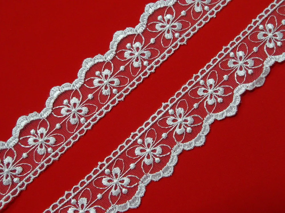 Borta biela na tyle "kvety"Skladom1,50 EUR/ m1,22 EUR bez DPH
